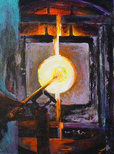 2021De opwarmoven in de glasblazerij van Leerdam, gemaakt met acryl op canvas,