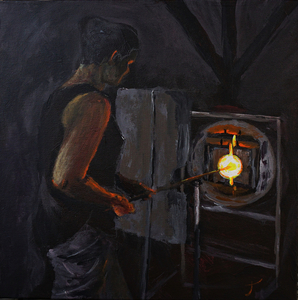 2021De opwarmoven in de glasblazerij van Leerdam, gemaakt met acryl op canvas,